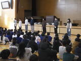 生徒会本部役員が引き継がれました 2025/12/26 管理者 生徒会本部役員選挙を実施し、新本部役員が選出されました。認証式を行い、前本部役員からバトンが引継がれました。 前本部役員からは、「全員でたくさん考えて活動してくることができた」「自主的に行動することの大切さが分かった」「自分たちが実現できなかったことを託します」などの話がありました。1年間、懸命に活動してきた内容の話でした。 新本部役員を中心に、生徒会全体で「断(た)えず考え」て、よりよい学校を目指していきましょう。 ※「断えず考える」は、本校の受け継がれる校風(座右の銘)です。