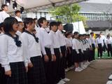 町内外から参加したたくさんの来賓、町の方々、保護者が見守る中、屋外とは思えない歌声で、堂々と立派に歌い上げました。